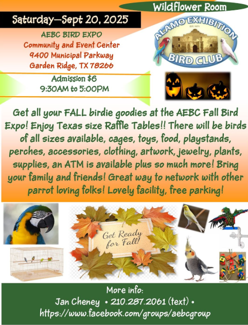 Bird enthusiasts gather in Garden Ridge, Texas for this expo featuring exotic birds, breeders, supplies, and educational exhibits. It’s a vibrant event for both new and experienced bird owners. Hosted by the Alamo Exotic Bird Club.