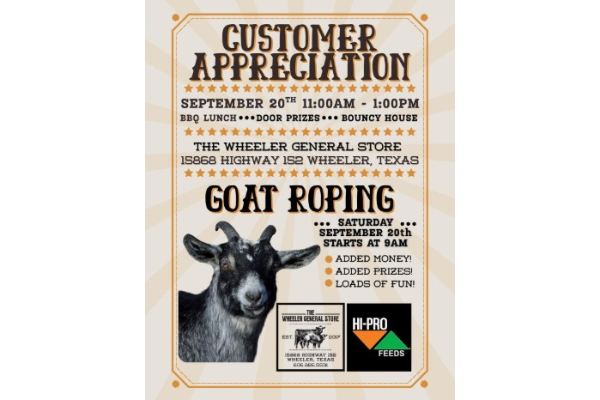 Hosted by The Wheeler General Store, this event celebrates customers with a free lunch and light-hearted goat-roping fun. It’s a friendly, family-oriented gathering where good food and good times go hand in hand. Expect relaxed vibes, laughter, and community bonding—no ticket required, just show up and enjoy.