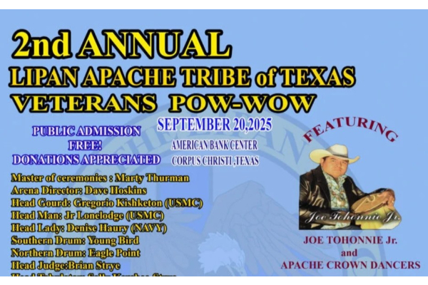 A vibrant Native American community gathering honoring the service and heritage of Lipan Apache veterans. Held at Corpus Christi’s American Bank Center, this pow‑wow features traditional dancing, drumming, and cultural ceremonies. It offers a rich blend of artistry, fellowship, and reverence for history and tribal identity.