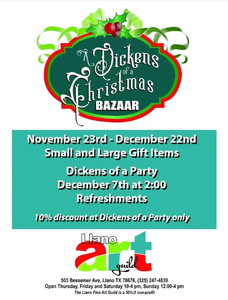 A holiday market organized by the Llano Art Guild, offering handmade gifts, seasonal décor, and one-of-a-kind art pieces.