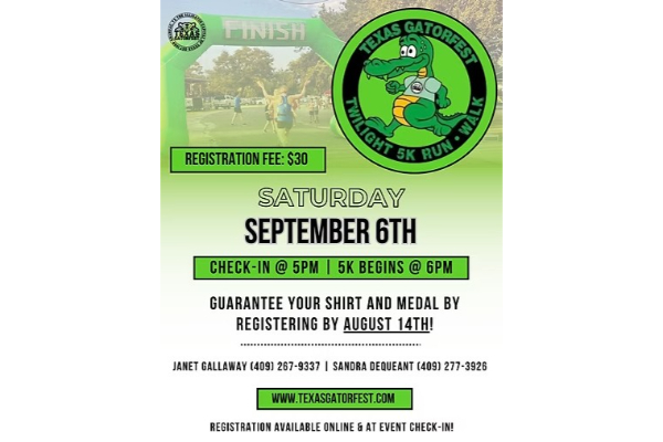 The Twilight 5K Fun Run is a highlight of GATORFEST, inviting runners of all levels to enjoy a scenic evening course through Fort Anahuac Park as the sun sets over the Trinity River. After the run, participants are welcomed to linger for live music, award‑winning BBQ, and post-race revelry. The race is beginner‑friendly, open to families, and part of a broader festival experience. A fitness‑meets‑festival event set in a picturesque lakeside setting.