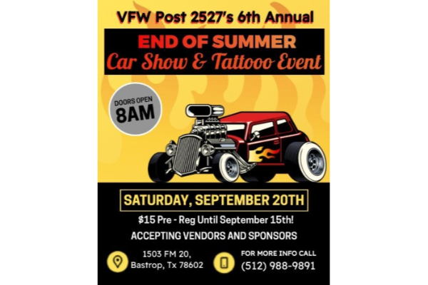 Hosted by VFW Post 2527 in Bastrop County, this all‑weather day‑long festival invites car, truck, bike, and motorcycle enthusiasts to showcase their vehicles. Participants can pre‑register for $15 (until September 15), while non‑food vendors pay $50 and food vendors $100. Sponsors (from $100 to $300) receive promotional logo placement. Alongside vehicle displays, local tattoo artists offer flash tattoos, and vendors/food trucks create a lively fair‑style atmosphere.